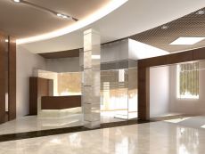 В марте КонцептСити завершила работу над дизайн - проектом интерьера бизнес-центра “Брест Деловой» в г.Брест –это первый офисный центр, который расположился на территории СЭЗ «Брест». При разработке интерьера были учтены все пожелания Заказчика ООО“БУГИНКОМ” по применению только высококачественных материалов и оборудования. Во внутренней отделке использовались настенные декоративные штукатурки и напольные покрытия только европейских производителей. Важным местом центра является вестибюль, который начинается со стойки Reception, где после регистрации в системе охраны, Вы сможете подняться на этаж на бесшумном лифте. Лифтовая шахта с первого по девятый этажи декорирована керамогранитом в светло бежевой гамме с глянцевой отражающей поверхностью, предавая респектабельность и монументальность в интерьере в целом. В интерьере очень много светоотражающих поверхностей и это позволило визуально расширить общее пространство вестибюля и холлов на каждом этаже. На первом этаже расположились офисы для страховых и туристических компаний, зонально они отделены цельностеклянными перегородками и цельностеклянными дверьми из закаленного стекла бронзового цвета. На всех этажах бизнес-центра установлены ламинированные двери с телескопической коробкой в цвет дерева. Офисные помещения были разделены на два уровня по внутренней отделке, что дополнительно позволяет арендаторам сделать выбор помещения в удобном ценовом диапазоне. Генподрядчиком были проведены все строительно – отделочные работы под ключ, таким образом, хозяину нового офиса остается лишь обустроить рабочие кабинеты офисной мебелью и приступить к деятельности. При создании интерьера бизнес-центра “Брест Деловой” мы стремились создать новый имидж в проектировании офисных интерьеров, где будет бизнес - будет успешным! Мы желаем процветания ООО “БУГИНКОМ” в новых инвестиционных проектах в сфере строительства!
